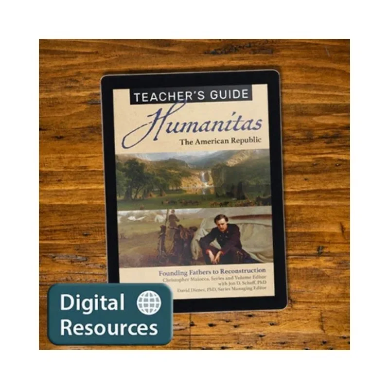 The Humanitas: American Republic Teacher’s Guide PDF supplies teachers with lesson objectives, contextual information about the source documents, and relevant points of discussion. It includes “Look Ahead” and “Look Back” notes that explain how various source documents relate to each other, as well as the discussion and writing prompts that appear in the student edition.