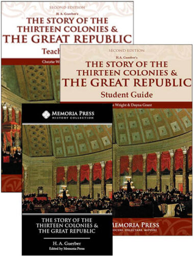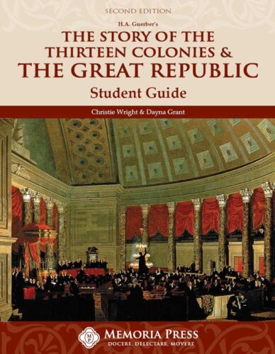 It is difficult to find an American history study on a grammar-school level that rivals H. A. Guerber’s two-volume American history set from the turn of the 20th century. So, rather than settle for lesser quality, Memoria has combined Guerber’s The Story of the Thirteen Colonies and the Great Republic into one edited volume that makes it a perfect one-year survey of American history for the middle school years.