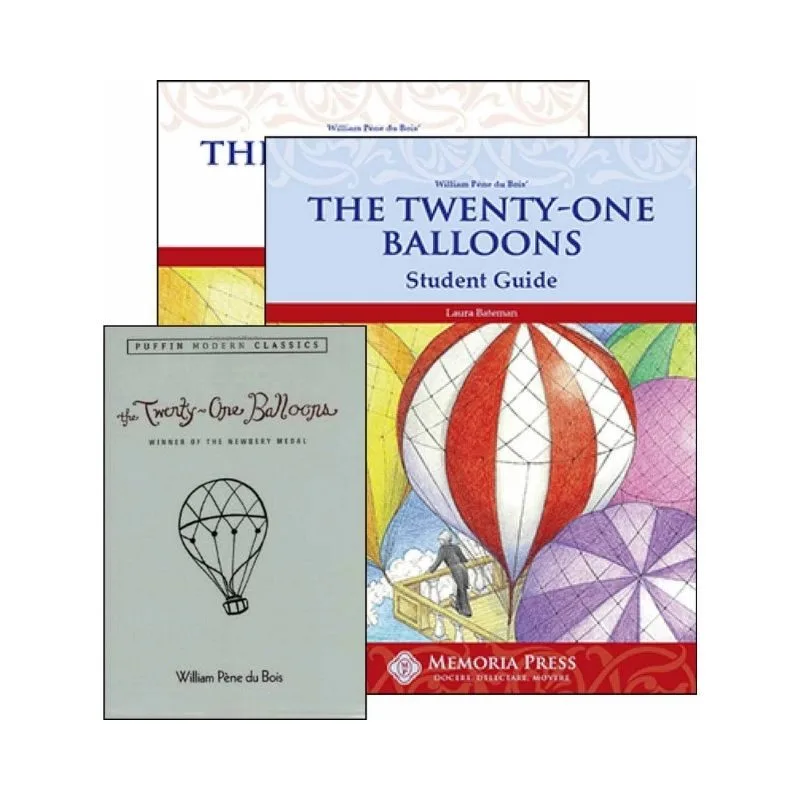 The Twenty-One Balloons Set includes The Twenty-One Balloons by William Pène du Bois , the Student Study Guide, and the Teacher Guide.